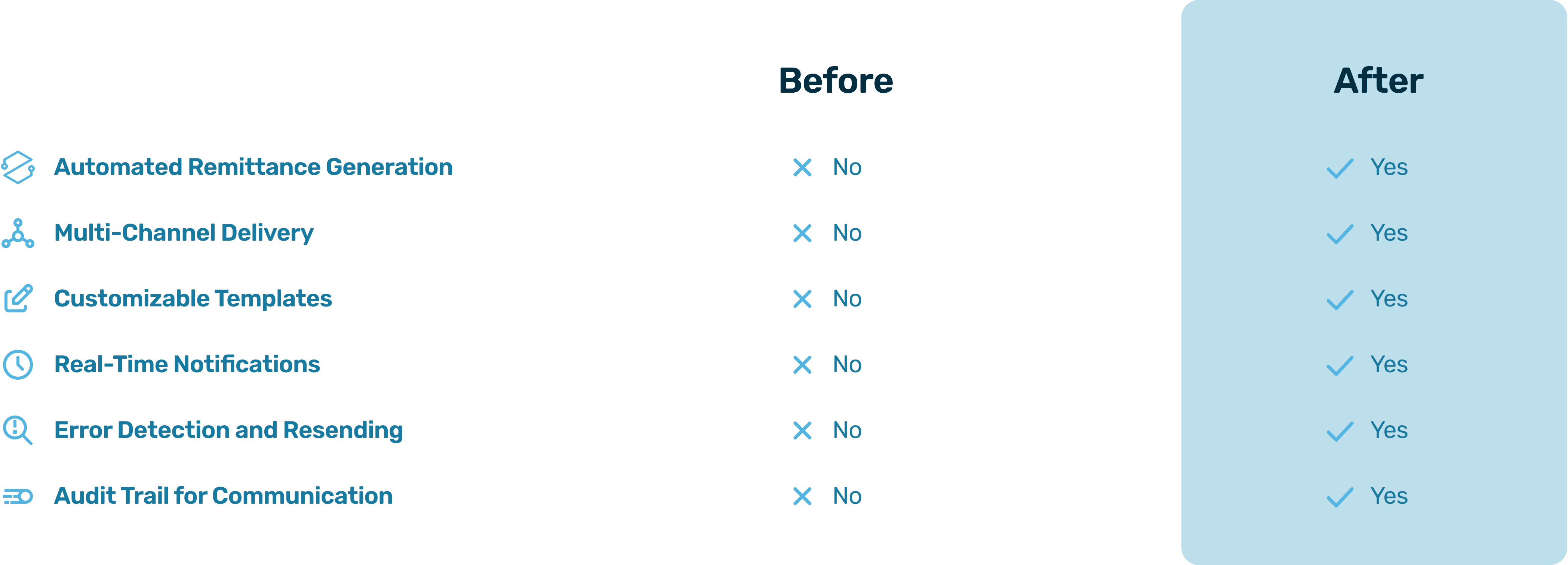 Detects failed remittance deliveries and enables quick fixes and re-sending to ensure vendors stay informed.