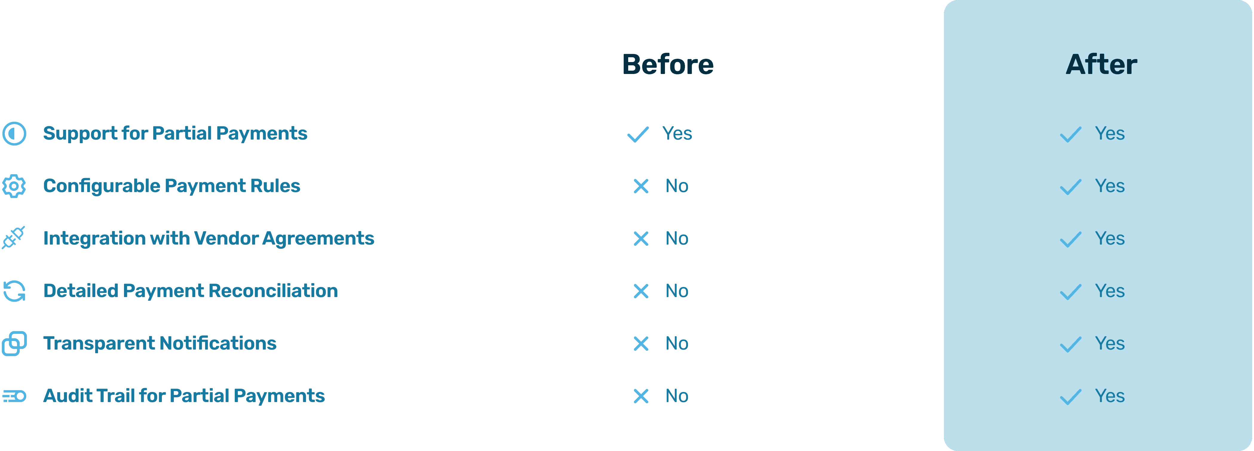 Supports rule-based partial payments, automates reconciliation, and provides transparent updates to streamline vendor payment workflows.