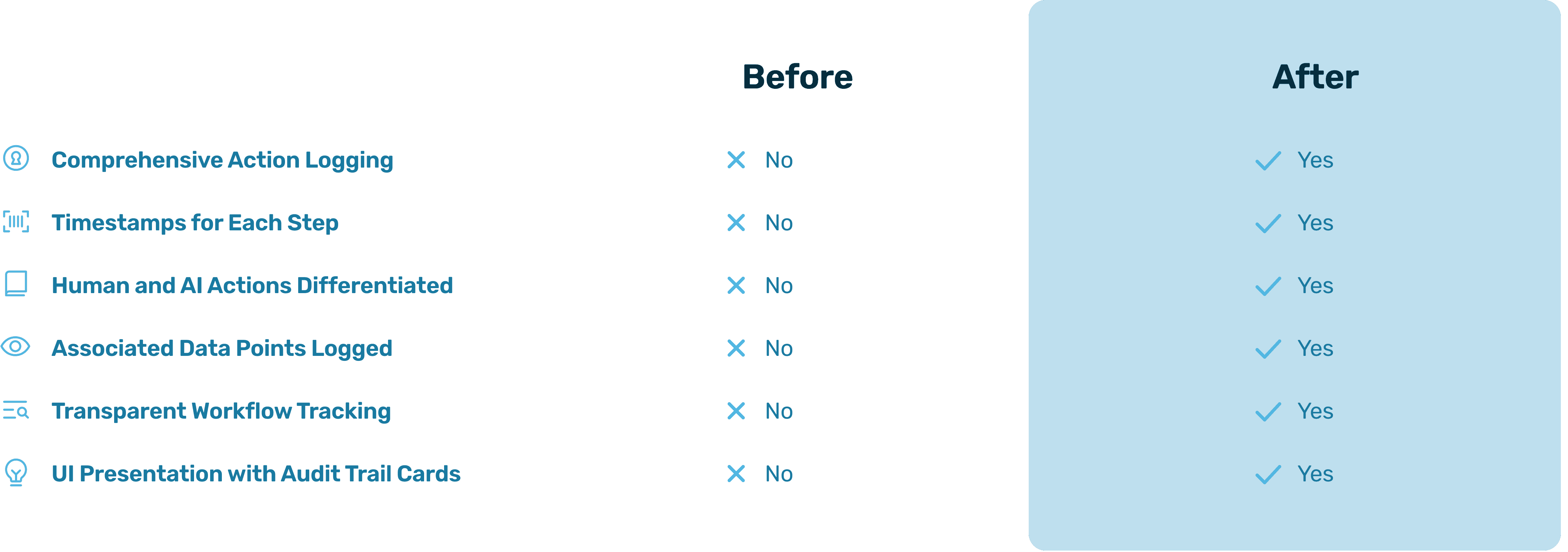 Easily distinguishes between AI-driven and human actions, so it’s clear who did what at every step.