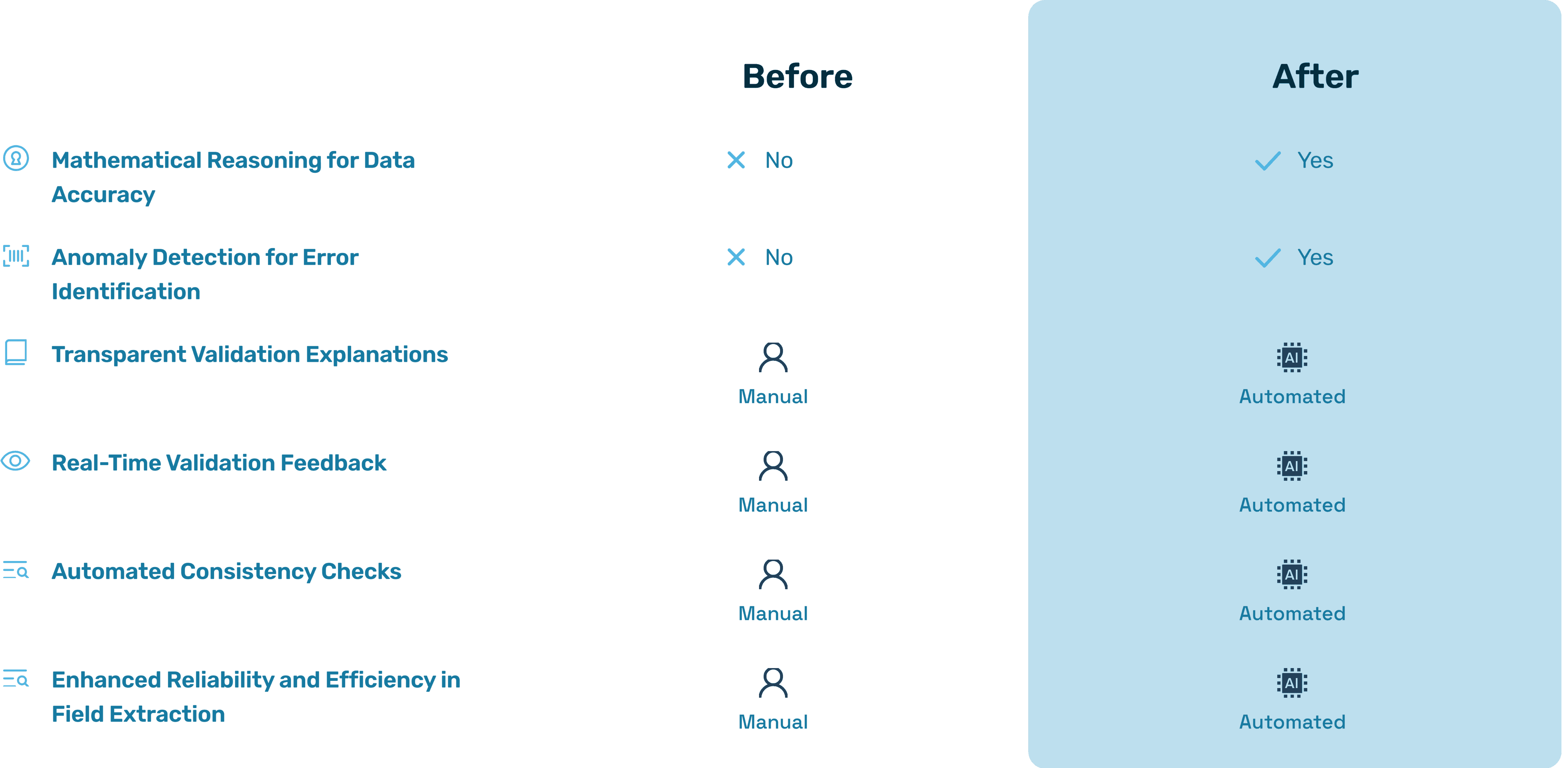 Hyperbots achieves 99.8% accuracy in converting unstructured data to structured fields through a multimodal MOE model integrating LLMs, VLMs, and layout models. With contextual validation and augmentations, the platform ensures 100% accuracy for deployed agents.