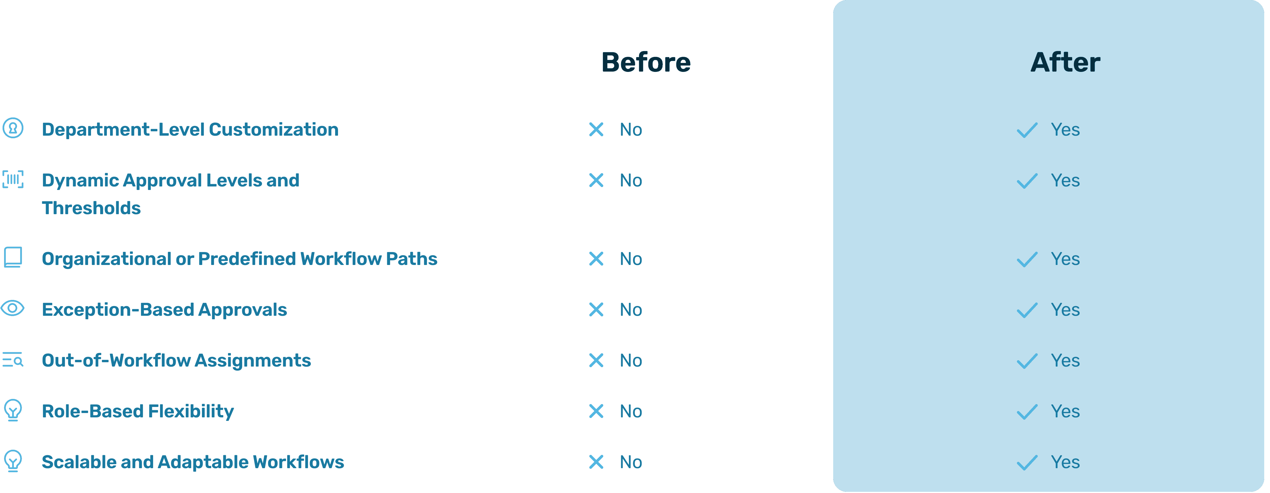 Easily adjusts to new departments, roles, or approval structures, supporting growth and change without disrupting processes.