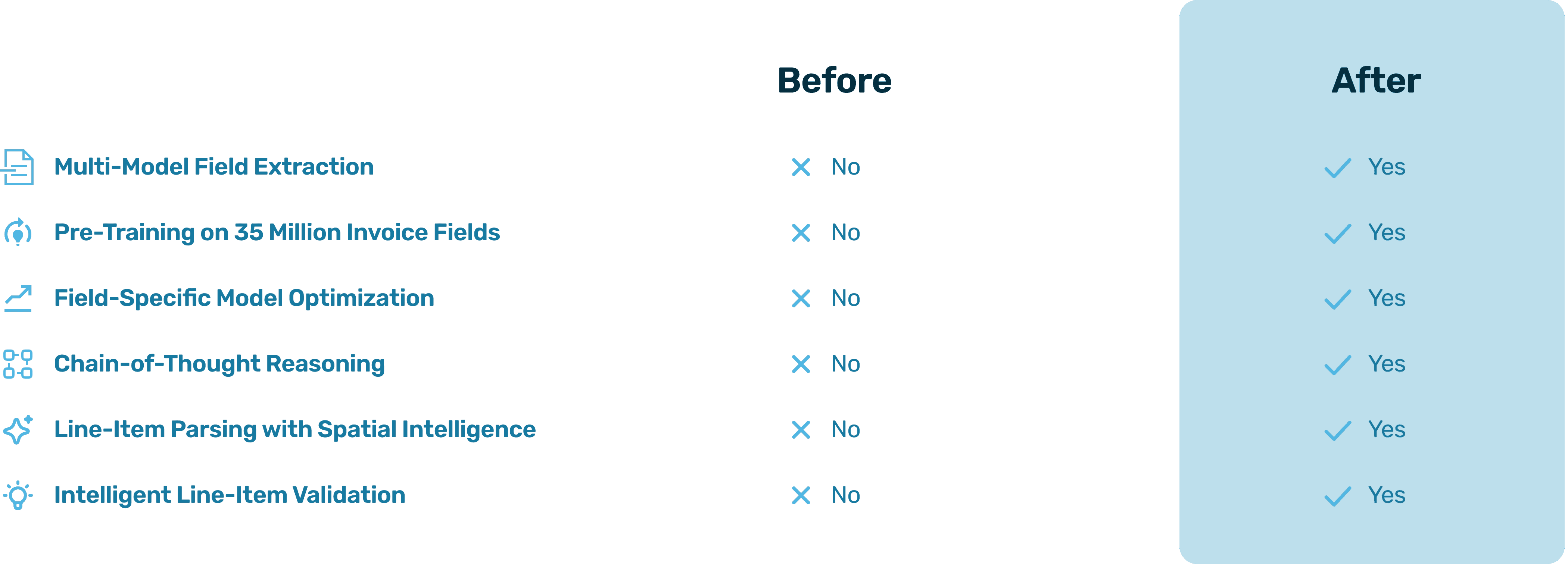 Trained on millions of real-world invoices, the system reliably handles a wide range of formats, vendors, and industry-specific layouts.