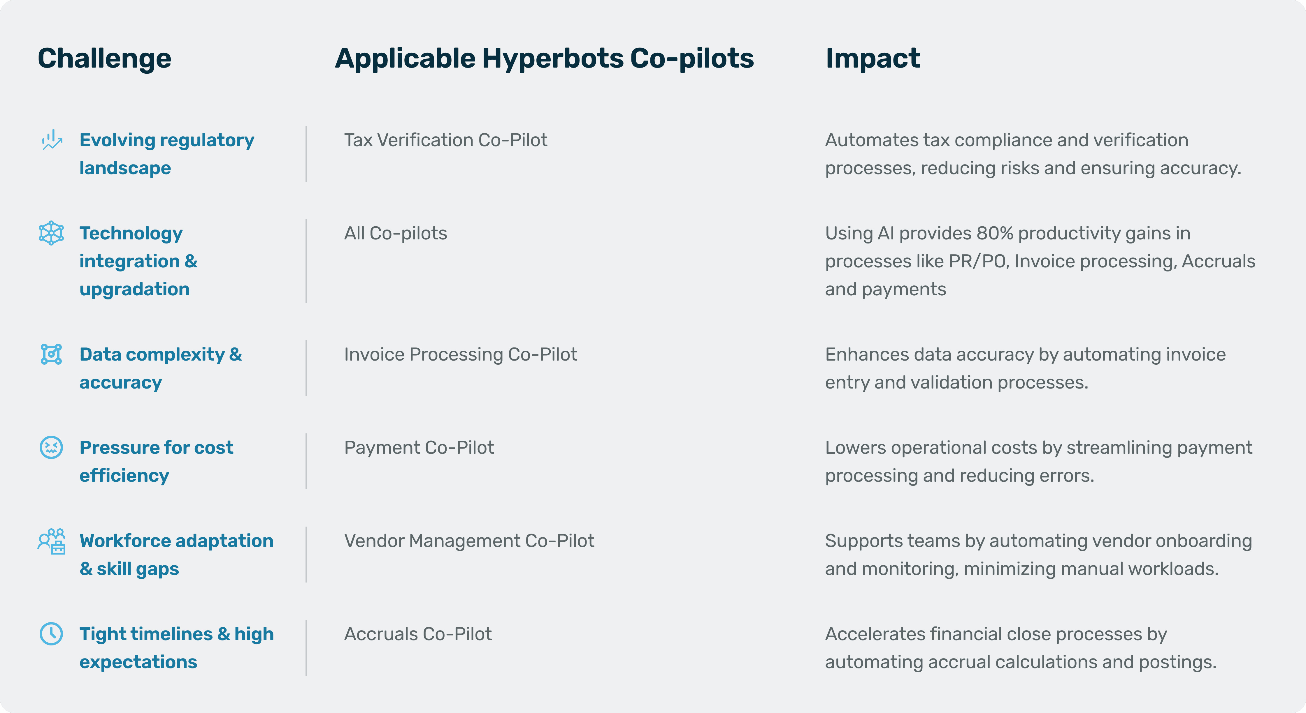 Challenges & Applicable Hyperbots Co-Pilots and Impact